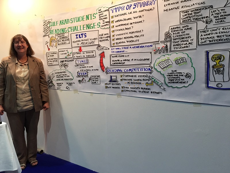 Three members of TESOL Arabia gave presentations for the Professional Development Program at the 25th Annual Abu Dhabi International Book Fair held at the Abu Dhabi National Exhibition Center from 8–13 May 2015. TESOL Arabia Past President Dr. Melanie Gobert presented on “Gulf Arab Students’ Reading Challenges,” Young Learners Special Interest Group Treasurer Garlfar Andrews presented on “Advice from an Experienced TESOL Teacher,” and TESOL Arabia member and regular presenter and author Dr. Ghassoub Mustafa presented on the “7 Habits of Highly Effective Teachers.”