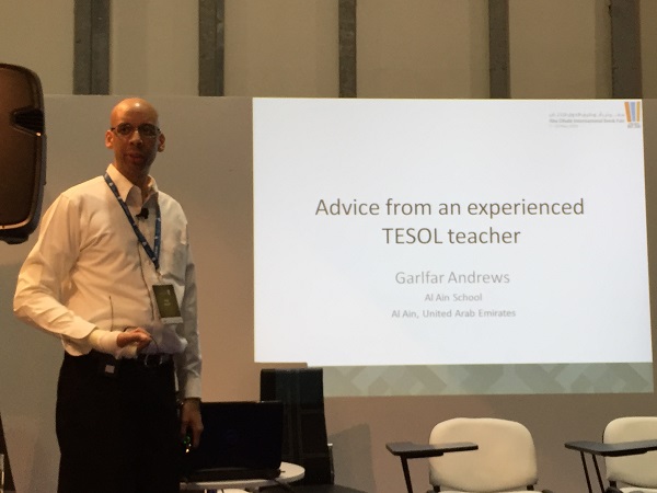 Garlfar Andrews presents “Advice from an Experienced TESOL Teacher” at the Book Fair.