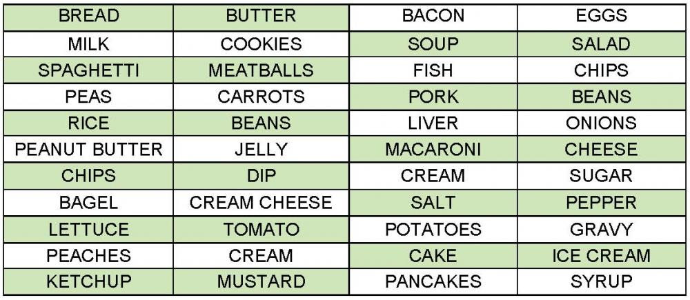 Below is a list of food pairs. These are common foods that we usually see together in the United States. If you're teaching elsewhere, consider creating your own food pairs with different matches, like bangers and mash, or phở and hot sauce. Put each word on a 3” x 5” card and hand cards out at the start of class. Have students find their partner by finding the food pair.