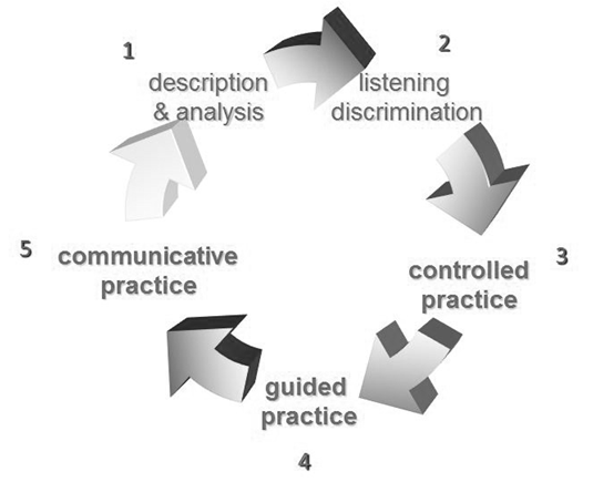 Celce-Murcia, Brinton, and Goodwin (2010) suggest that when teaching a segmental contrast, teachers use the five-part communicative framework in Figure 1.