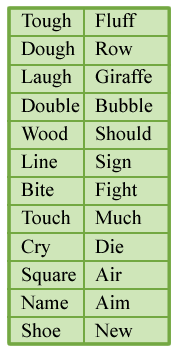 Prepare a list of rhymed words—about 12–15 pairs. Try to come up with words that rhyme but have different spelling rules.