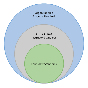 Figure 1. Relationship Among Organization and Program Management Standards, Curriculum and Instructor Standards, and Candidate Standards