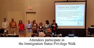 The remainder of the morning offered up various breakout sessions, where a number of organizations provided informative and interactive presentations. During one breakout session facilitated by the American Immigration Council, attendees participated in the “immigration privilege status walk,” based on a freely available lesson plan (PDF), which helped show the benefits and limitations associated with different immigration statuses.