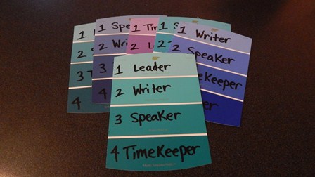 Choose a different color for each group and write down and number the main roles within the group, such as leader, writer, speaker, and timekeeper. Spend a few minutes going over the responsibilities of each role and instruct each student from each group to choose a number between 1 and 4. Then it’s time to hand out the group role cards, while also stressing the importance of not changing roles after seeing them.