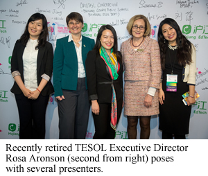 After a number of heartfelt stories and slideshows were shared reflecting on Aronson’s 7 years as executive director of the association, a new TESOL annual award was unveiled to honor her service and deep commitment to the professional learning of teachers in underserved countries. The Rosa Aronson TESOL Global Professional Learning Scholarship Program was established to provide seven annual scholarships for a maximum of US$500 each and can cover the cost of the global professional membership along with any professional learning opportunity offered by TESOL International Association.