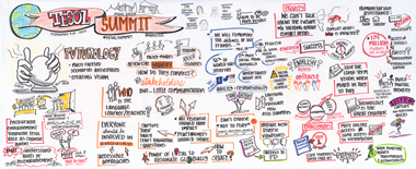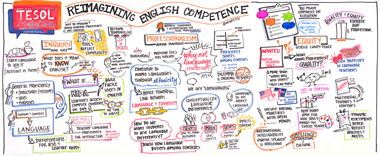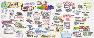 To continue the hybrid nature of the event, each of the presentations was live-streamed, and online participants were given the opportunity to pose questions to the speakers in real time. In addition, Wendi Pillar, a graphic recorder and ESL educator from North Carolina in the United States, was on hand to capture the ideas shared during the summit in visual form. (Each of the recordings, as well as the documents from the graphic recorder, are available on the Recorded Sessions pages of each theme on the 2017 summit website.)