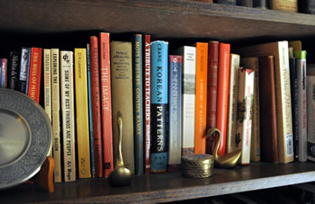 In Dr. Cartier’s home, I peruse his bookshelves, though he says he’s had to consolidate in the past few years. Books are crammed onto the bookshelves, titles ranging from Psycholinguistics to Customs and Crises in Communication and An Elizabethan Song Book to Asimov’s Guide to the Bible. As I mentioned earlier, he’s recently parted with a hard copy of the very first issue of TQ.