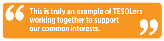 So if you have thoughts or ideas you would like to explore, please feel free to write to me or to share ideas within your myTESOL community or even in the myTESOL Lounge. And don’t forget to volunteer the next time you see a call for TESOL leaders. This is our association. We need all of us to work together to succeed!
