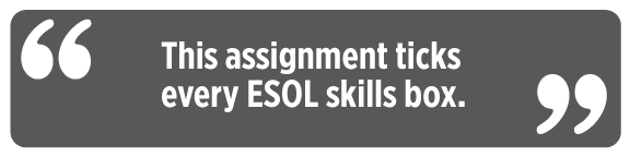 After I reached out to a few local businesses, I realized that people were more than willing to talk to my students about their jobs and their businesses. So, after clearing a day and time with them, students are placed in pairs and assigned a business to visit. Before setting out, everyone brainstorms questions that they would like to ask and practice what they will say. The culmination of this exercise is a paper summarizing what they learned. (Lower level students write out the questions and then write the answers they were given.) All of the groups present their interviews to the class using pictures they took during their visit. This assignment ticks every ESOL skills box and builds confidence in students’ ability to understand and communicate in English.