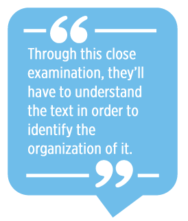 Through this close examination, they’ll have to understand the text in order to identify the organization of it.