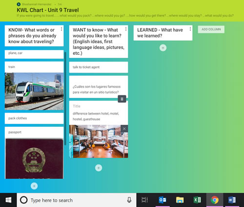 Figure 1. Sample Padlet KWL chart. (Click here to enlarge)