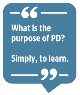 and share ideas. Participating in PD can be refreshing and reflective, inspiring