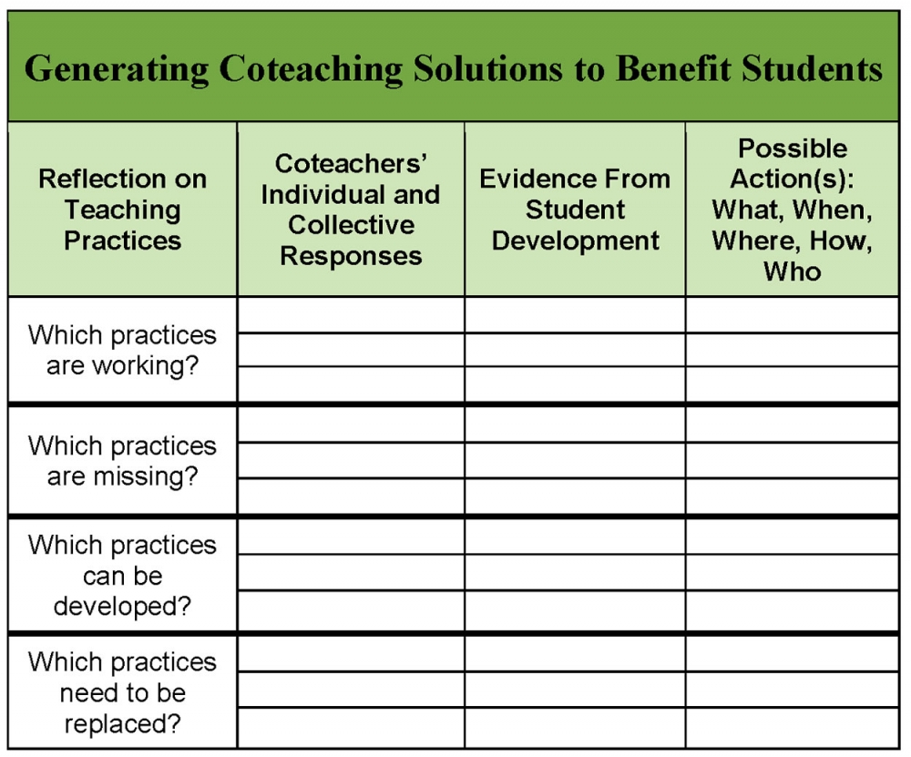 clarifier, and so on. As a team, identify the areas multiple coteachers agreed