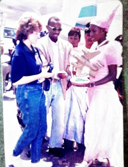Linda Finch at the Dakar airport with my students welcoming her