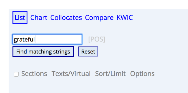 search bar in order to search for prepositions used immediately after grateful. Students must ensure that there is a space