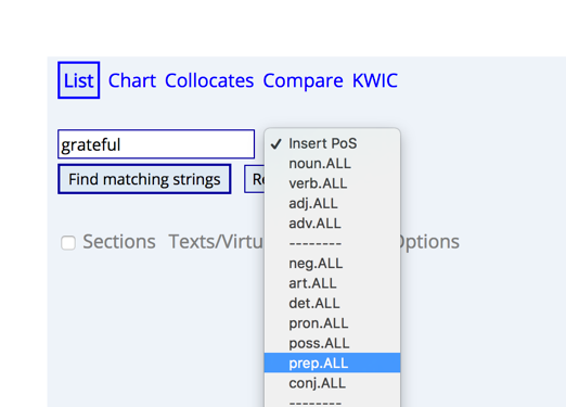 to find out the most commonly used prepositions after grateful (see Figure 4).