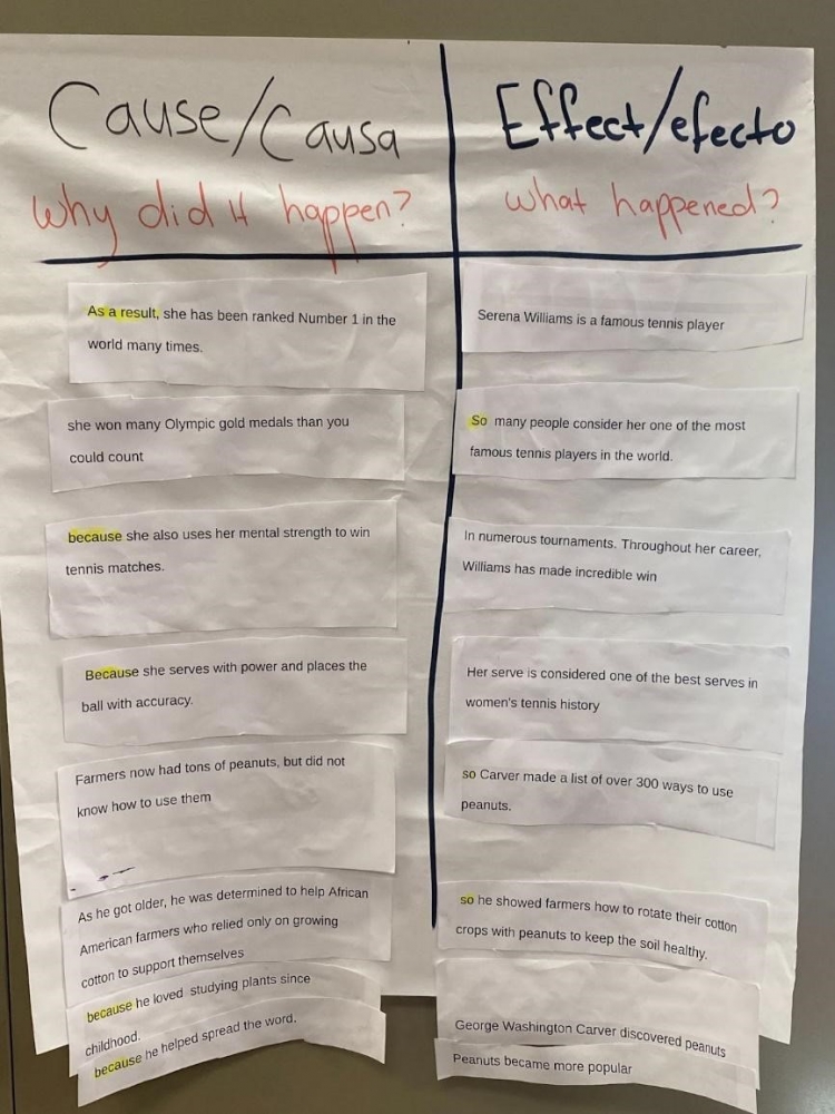 the board (because, so, and as a result) so students can refer to them later. Explain