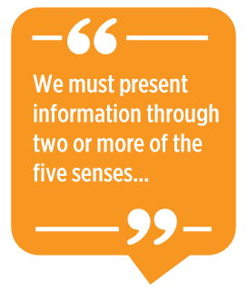 must encourage students to present information through more than one sense to