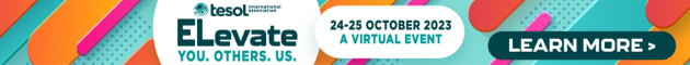 Register for TESOL ELevate: Join your primary and secondary English language teaching colleagues worldwide for TESOL ELevate, 24–25 October, a one-of-a-kind online event. Learn more about the full program, including live workshops and networking sessions from four organizations. |
