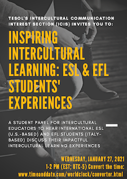 Two of the many goals of TESOL’s Intercultural Communication Interest Section (ICIS) are to promote intercultural understanding and to recommend methodology for teaching intercultural communication. What better way to learn how we as TESOL educators are meeting these goals than asking the learners themselves?